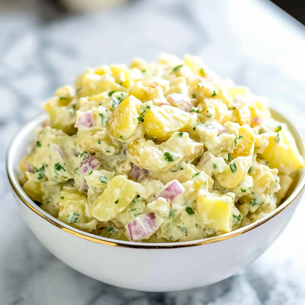 Creamy, dreamy flavors come together in this classic dish, making it a staple for any gathering. Tender Yukon Gold potatoes create the perfect base, while crisp celery and zesty red onion add delightful texture. Sweet pickles bring a burst of flavor that keeps everyone coming back for more. Plus, the easy dressing—whether you choose rich mayonnaise or a lighter Greek yogurt—ensures it’s quick to whip up. Whether it’s a picnic or barbecue, this crowd-pleaser will have your guests asking for seconds!