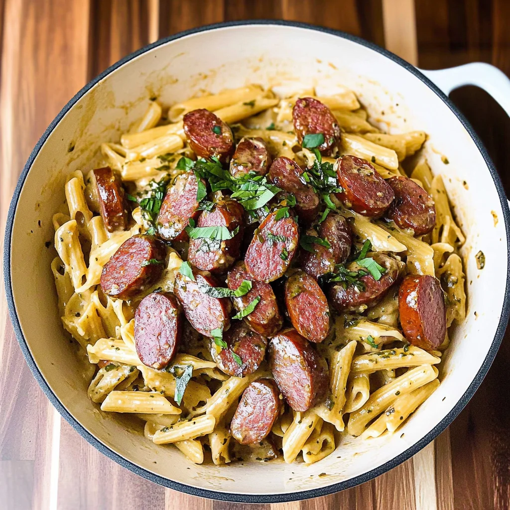 Imagine a plate of Kielbasa with Creamy Mustard Pasta, where the smoky, savory kielbasa meets the rich, velvety mustard sauce, creating an irresistible aroma that dances through your kitchen. Each forkful combines the comforting warmth of al dente pasta with a delightful tang that makes your taste buds sing, turning an ordinary evening into a culinary adventure.