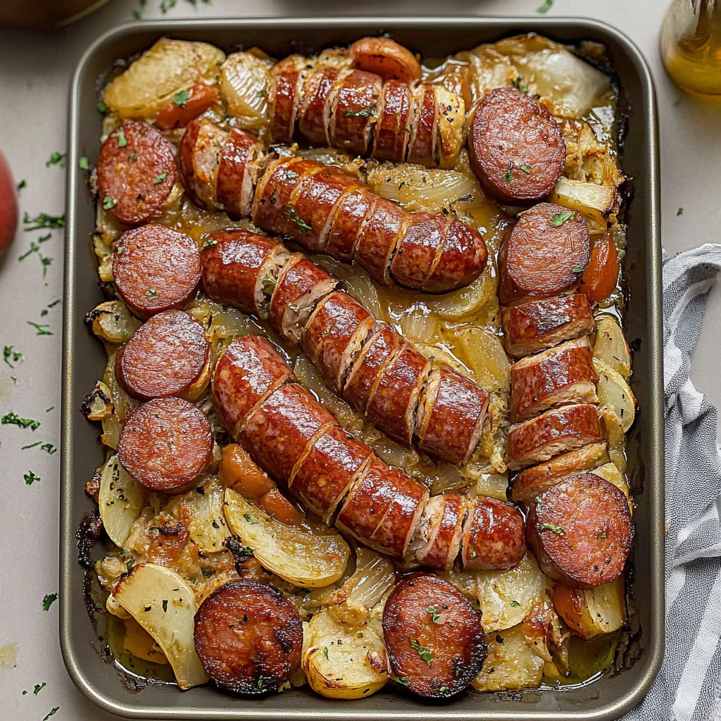 Picture this: the tantalizing aroma of sizzling kielbasa fills the air, mingling with the earthy scent of roasted vegetables. Each slice of the Sheet Pan Hasselback Kielbasa is a delightful surprise, bursting with juicy flavor and perfectly caramelized edges that beckon you to take a bite.