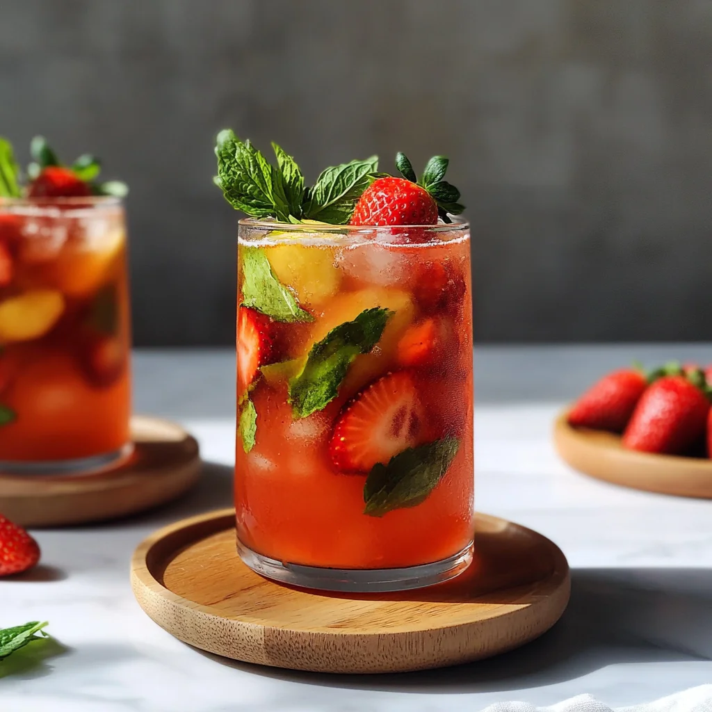 5. Garnish with additional mint leaves and a slice of strawberry if desired, adding a beautiful pop of color and aroma to your drink. It’s all about making that presentation inviting!